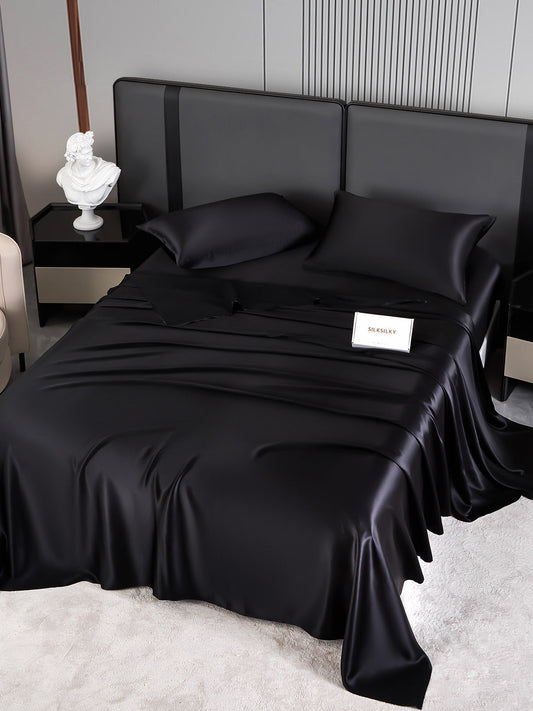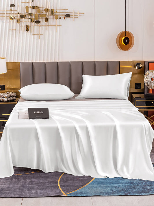 Set da 4 pezzi in seta 25Momme: lenzuolo sopra + lenzuolo con angoli + 2 federe